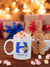 This personalised Christmas design custom mug makes the perfect gift. With cute Elf initials. The design will be printed on both sides of the mug.
